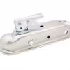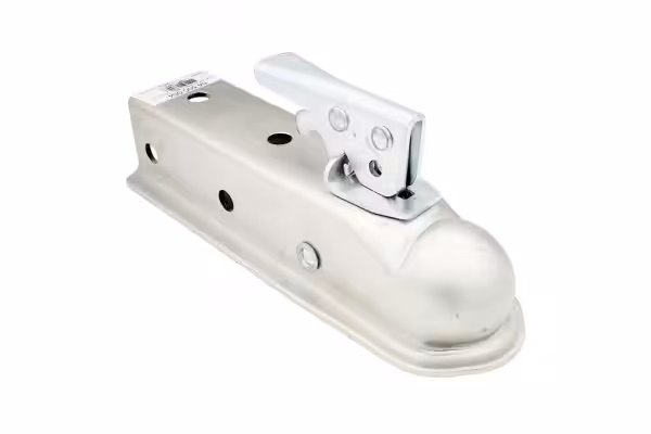 This straight-tongue coupler features a gross trailer weight capacity of 3,500 lbs. and a tongue weight capacity of 500 lbs. It has a 2″, ID, channel and fits a 2″ diameter trailer ball. It is Zinc coated for a long lasting durable finish. The coupling style is a trigger operated lever to close the coupler clamp under the hitch ball and a double action lock trigger/lever to release the coupling. Has hole for saftey pin.